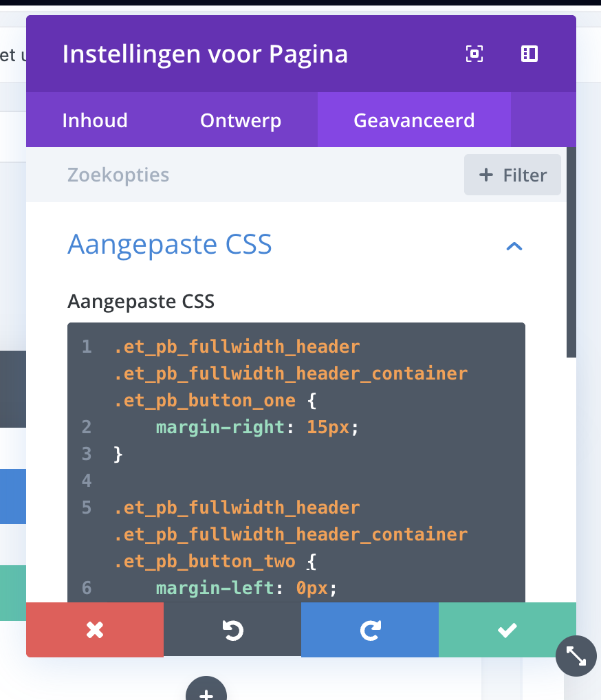Ga vervolgens naar 'Geavanceerd' en plaats hier de aangepaste CSS: