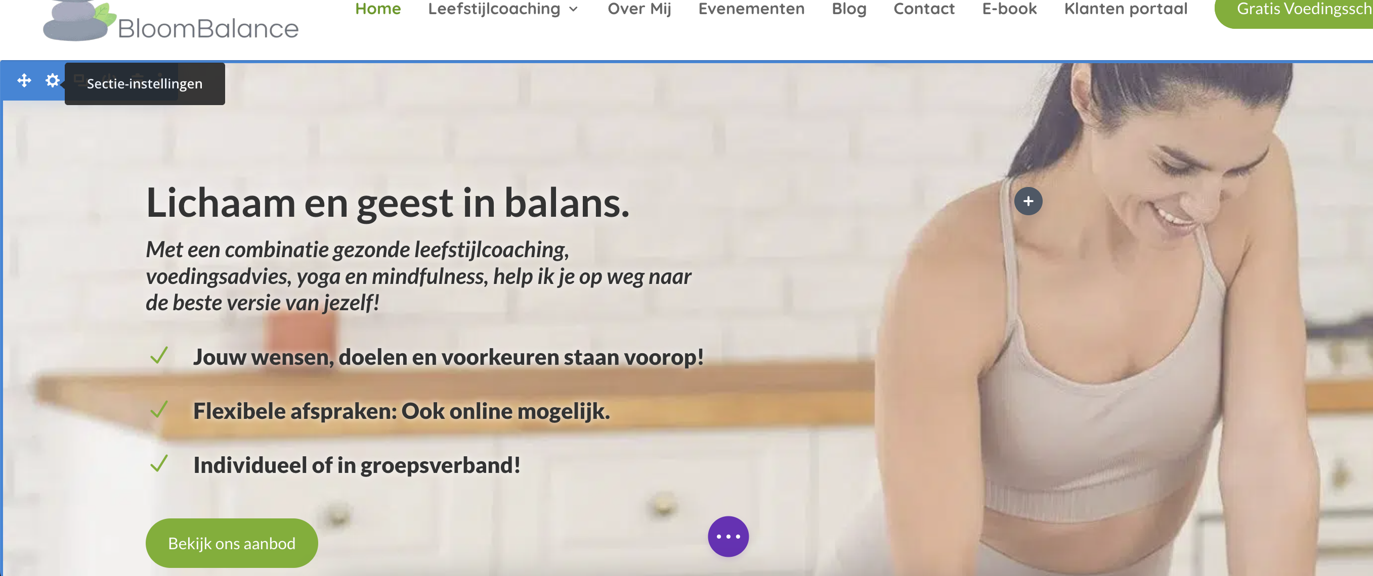 Beweeg met je muis over de sectie, rij of module waar je de achtergrond wilt aanpassen.