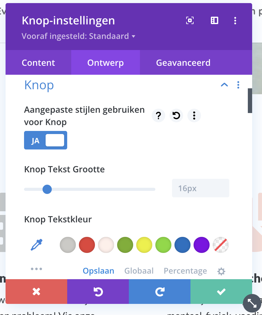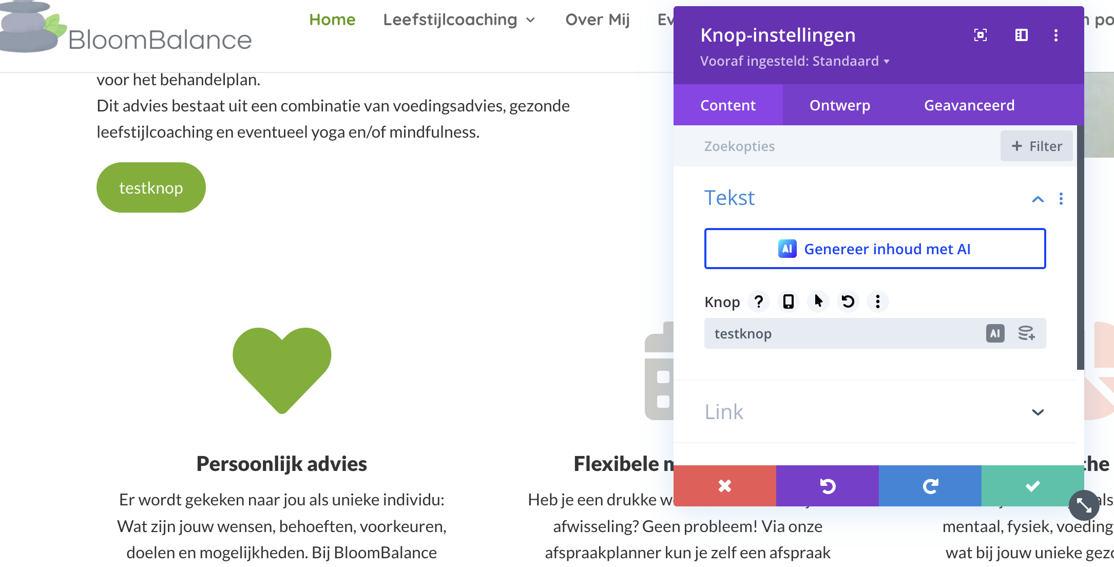 Vul de knoptekst, link en eventuele andere inhoud in.