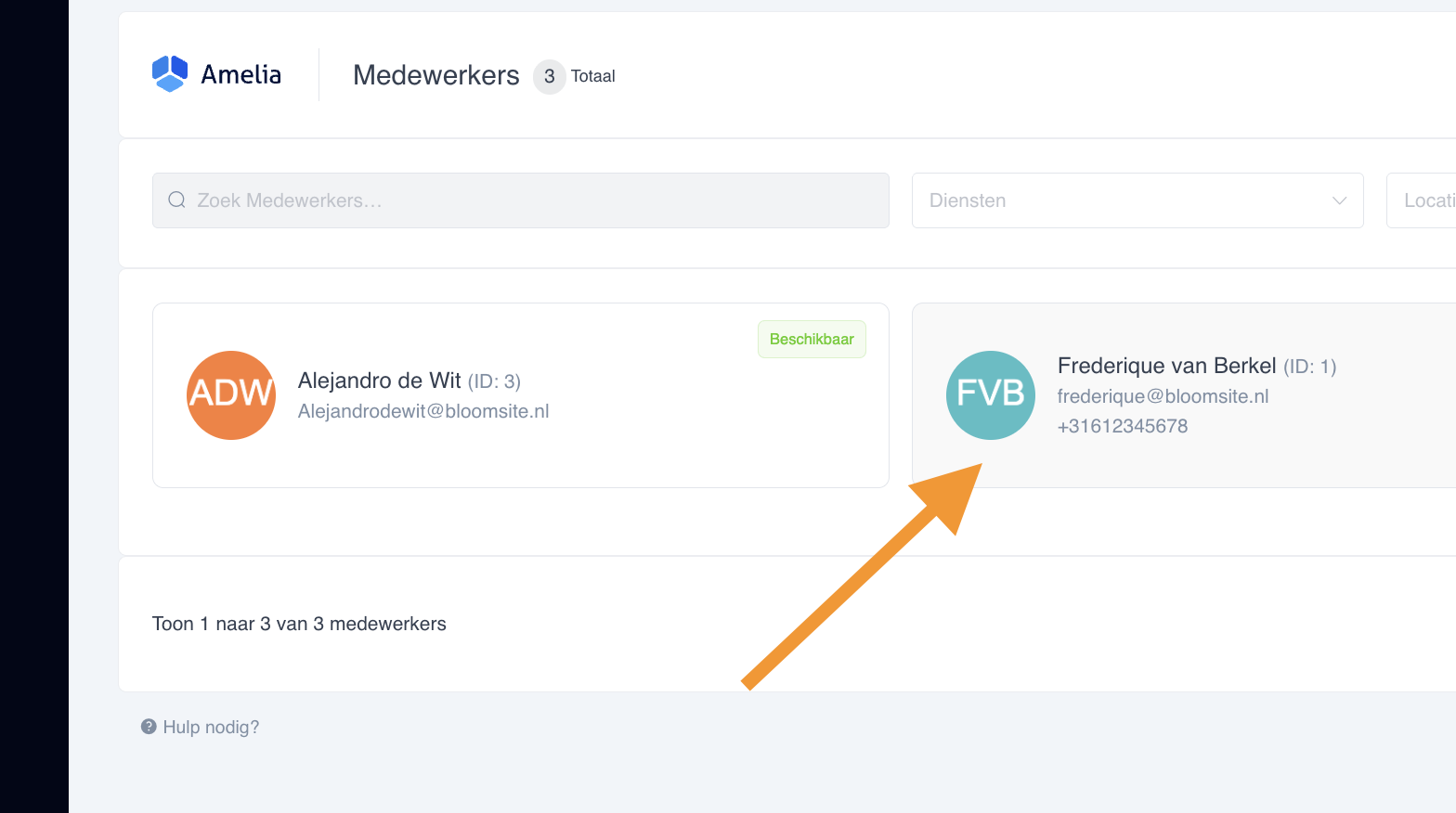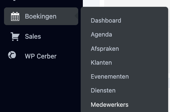 Ga in het dashboard naar Boekingen > Medewerkers.