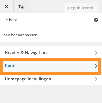 Je kan de kleuren van de footer, de balk onderaan je website, zelf aanpassen. Klik hier als je de inhoud wil aanpassen.