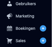 - Wanneer je Bloomsite Ondernemner abonnement hebt en wilt upgraden naar Bloomsite Professional, klik je in de beheeromgeving van je Bloomsite op één van de menu-items met een blauw plus-icoontje.