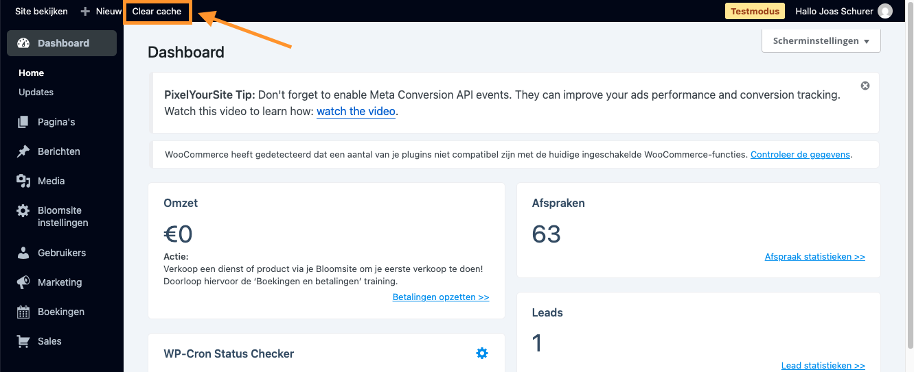 Om de cache te updaten met de meest recente aanpassingen, kan je op "Clear" cache klikken.